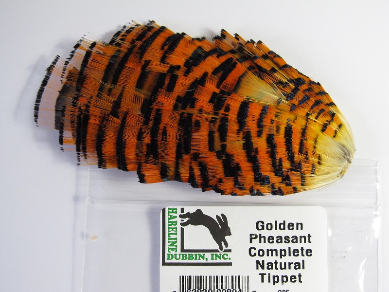 ヘアライン社のゴールデンフェザント コンプリートティペットです。小さ目であることと、模様があまり良くありません。その為お安くしています。