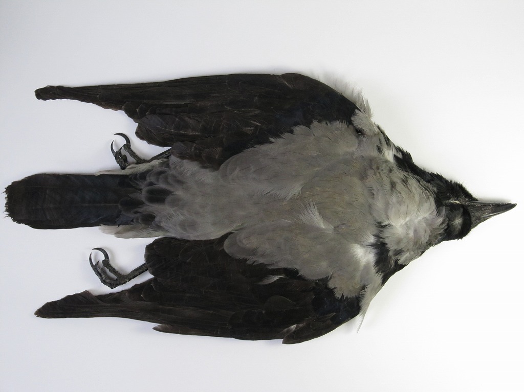 フーデッドクロウのコンプリート スキンです。 スロートの辺りには光沢のあるブラックのスモールフェザー、バックにかけてはグレー / ライトブルーダンのフェザーが生えています。