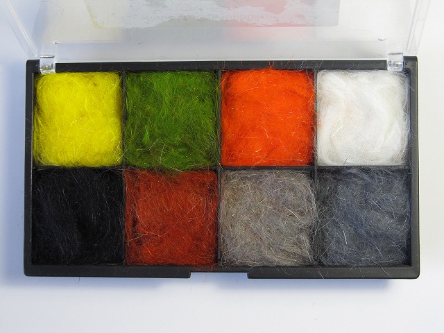 ラビットファーにアントロンが少量ブレンドされたダビングファーが8コマのケースに入っています。ニンフやウエットフライなどに最適なマテリアルです。