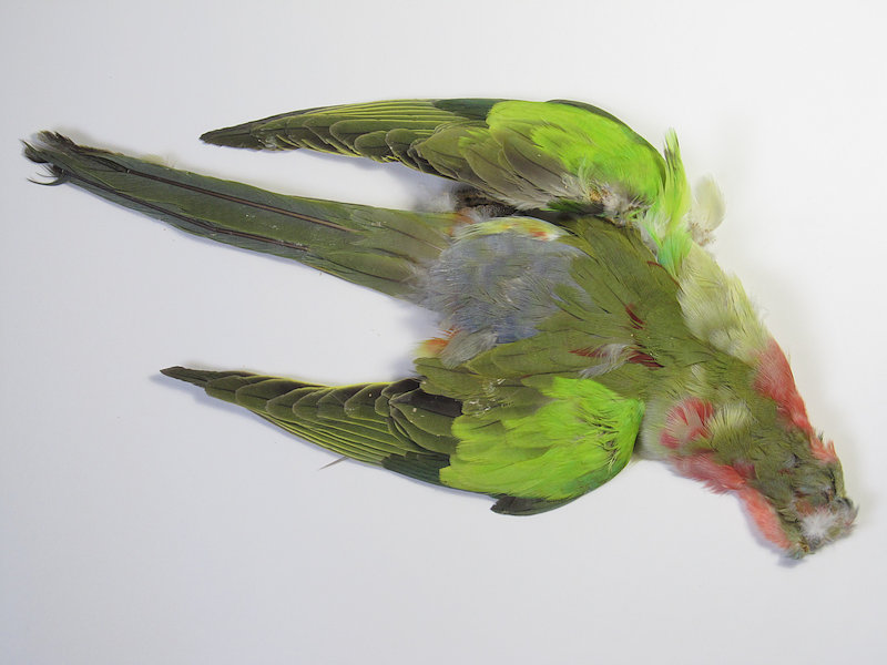 パラキートの一種、レッド フロンテッド グラス パラキートのスキンです。 ライトグリーン、イエローにレッドが混じったカラーのスモールフェザーなどが生えています。 片側のウイングが外れかかっています。