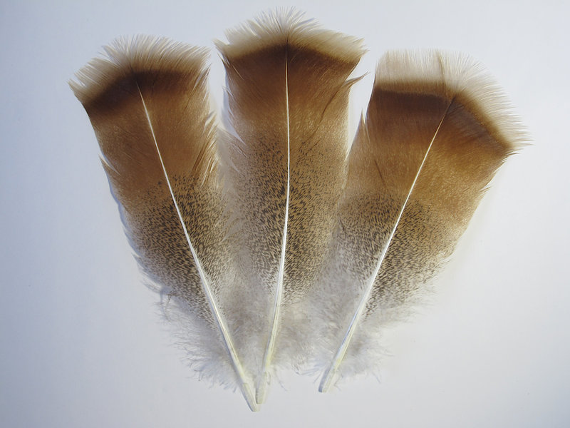 シナモン/スペックルドカラーのターキー ランプフェザー 3枚です。