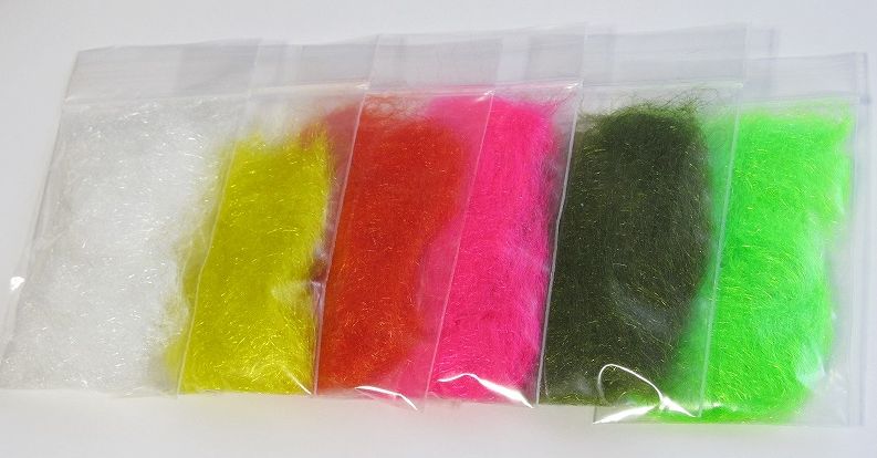 ニンフ系、ウエット系のパターンに最適なダビング材です。他のダビングファーにブレンドしても効果的です。