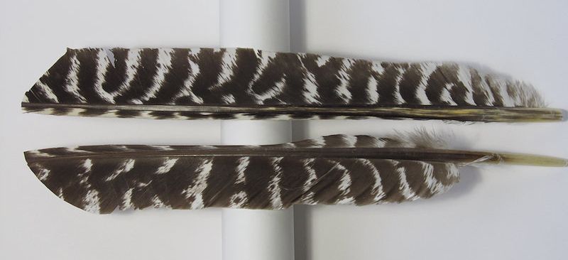 ナチュラルカラーのターキーバイオット(プライマリークイル)です。 カラーは、ナチュラルのブラックと白で構成されています。 バイオットの側だけなく、クイル側も使用できます。