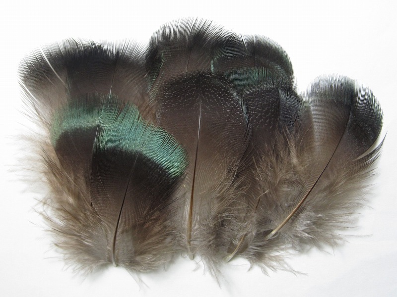 カペカリーのブレストフェザー、10枚入りです。 先の方にメタリックなグリーンの部分があります。。