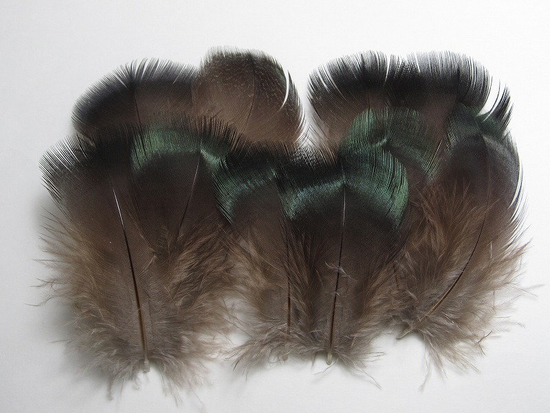 カペカリーのブレストフェザー、10枚入りです。 先の方にメタリックなグリーンの部分があります。。