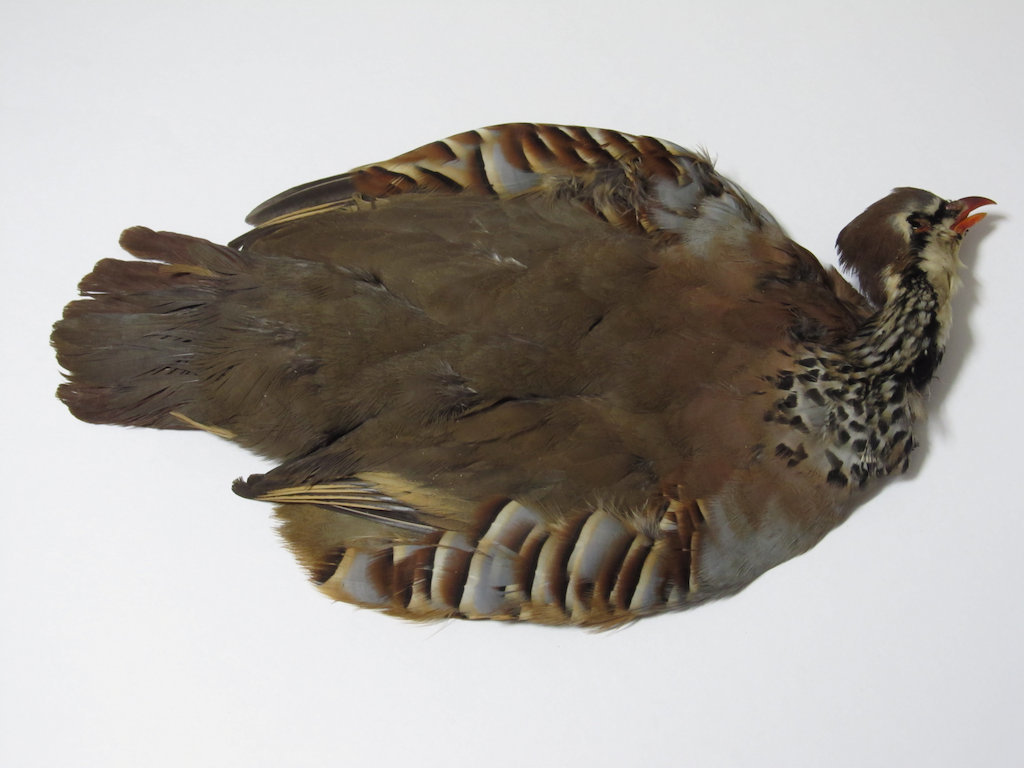 フレンチパートリッジのコンプリートスキンです。 ポピュラーなストライプフェザーのほか、黒の入ったスモールフェザー、ライトグレー、ブラウン、ブラウン・オリーブのフェザーが取れます。 ウイングクイルやテールフェザーも利用できます。