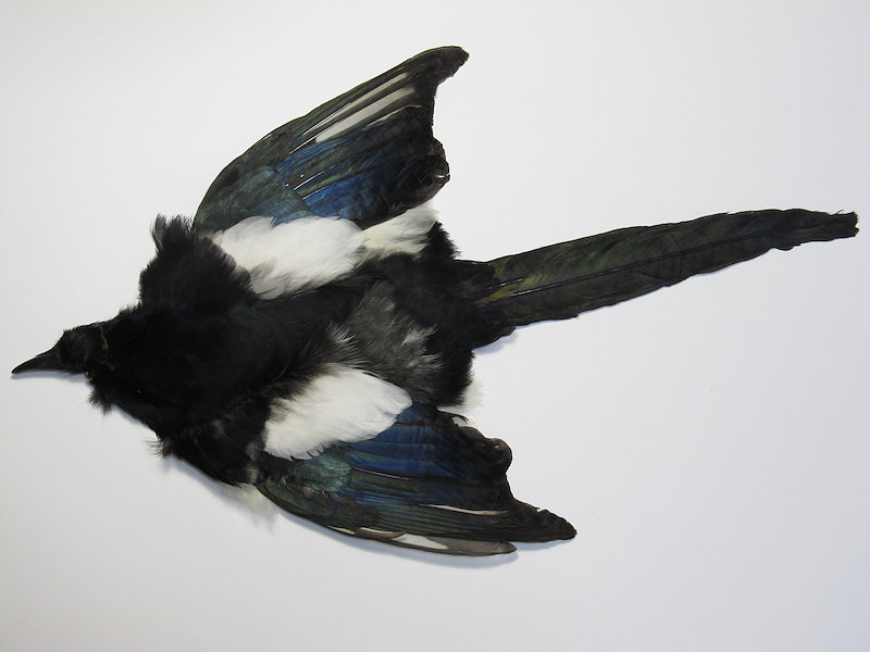 マグパイのコンプリートスキンです。 メタリックなダークブルーのウイングとメタリックグリーンのテールの他、ブラックやホワイトのフェザーなどが生えています。 濃いブラックのソフトなフェザーはソフトハックルの素材として有用です。