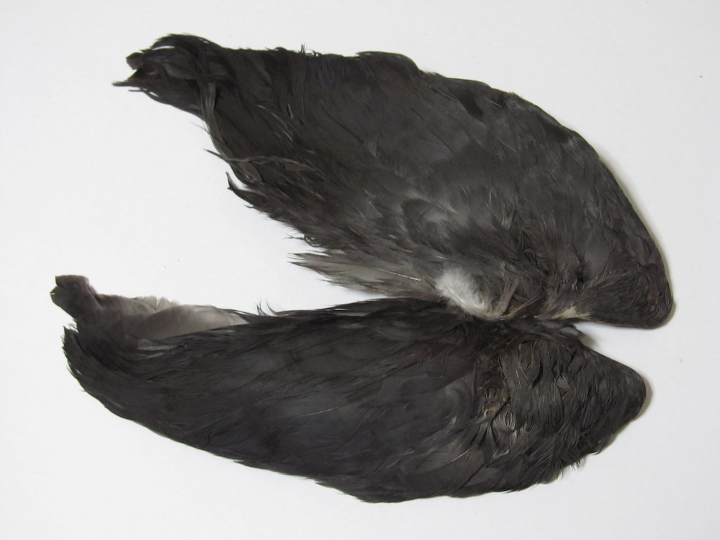 ウイングクイルはウエットやドライのウイング材に、ウイングに生えているスモールフェザー(コバートフェザー)はソフトハックルフライに使用されます。